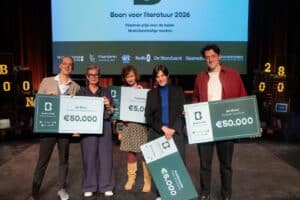 Illustrator Ingrid Godon en ik waren al blij en verrast met het feit dat ‘De vrouw en zijn Hoofd’ op de longlist van de Boon stond. En nu hebben we zowaar de shortlist gehaald van deze prestigieuze Belgische literatuurprijs. Andere genomineerde kinder- en jeugdboeken zijn: De Wonderverteller- Lida Dijkstra& Djenné Fila, Krekel- Annet Schaap, Metafmorfose-Geert-Jan Roebers & Merlijne Marell en Peer- Mohana van den Kroonenberg& Karst- Janneke Rogaar. Op dinsdag 24 maart wordt de winnaar tijdens een live uitzending bekend gemaakt. Ik verheug me nu al op deze feestelijke dag. Laat dat maar aan de Belgen over!